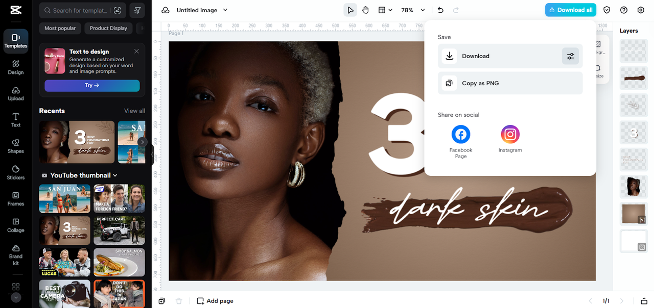 Step 3: Save and use your edited photo Once you are satisfied with your image. Click on “Download all” tab present in the top right corner. From there select “Download” and adjust image size, format, and quality to store it on your device. You can also copy your image as PNG for instant use anywhere.